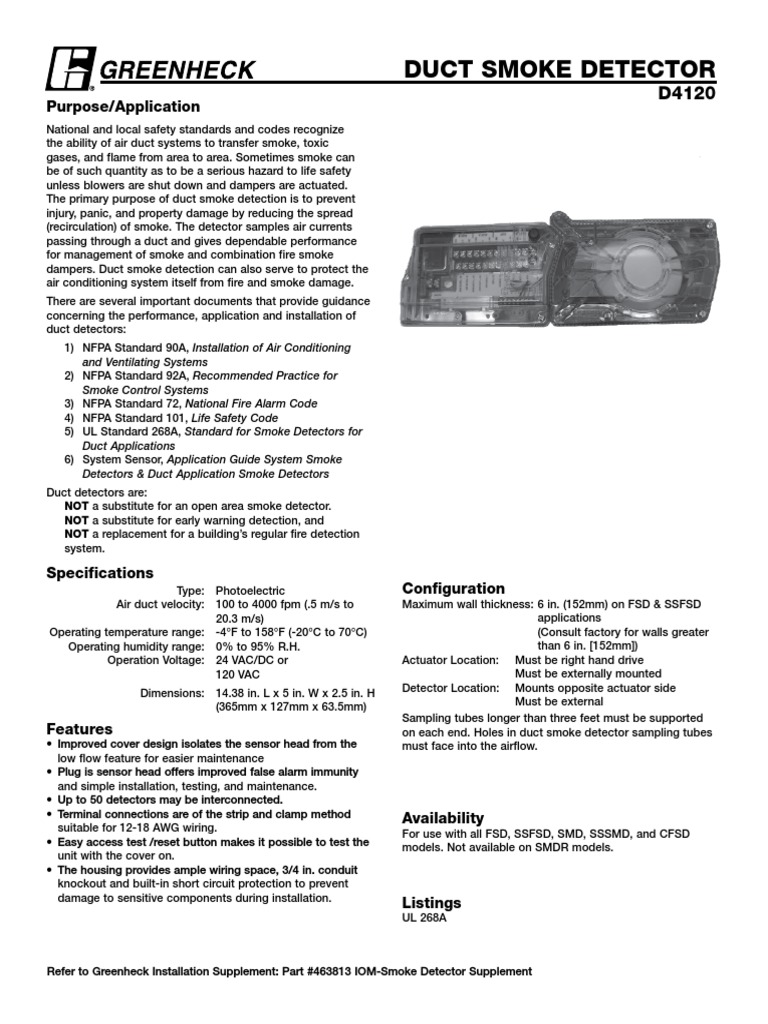 The d4120 air duct smoke detectors are listed per ul 268a. Not a substitute for an open area smoke detector warning: The duct smoke detectors/sensors are intended for use in the control of air the duct sensor obtains both power and data over this wire pair. The detector housing shall be ul listed per. Because the detector mounts to round or rectangular ductwork, it is indispensable for building automation systems, bas, and hvac applications.